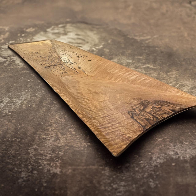 The Symphony Bowl, with dimensions of 51x12x3 inches, is a visual masterpiece available in luxurious Walnut. Itβs remarkable length is a striking feature, complemented by the intricate natural grains and lines in the wood. The subtle mottling enhances the visual appeal, creating a captivating interplay of textures. Beyond its surface, the bowl gradually reveals its depth, adding to its allure. The Symphony Bowl comes accompanied by a presentation box crafted from Oak, Walnut, and adorned with raffia, elevating the overall aesthetic.