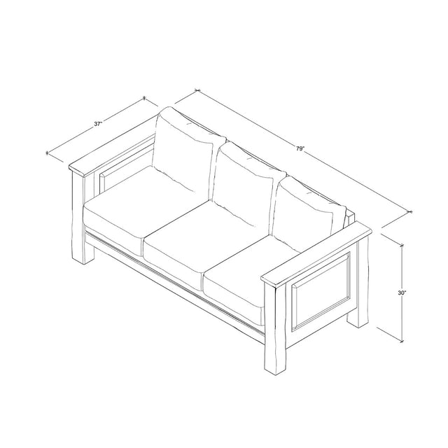 The Coloma Gold Bayne Sofa, measuring 79x37x30 inches, is a statement of rustic sophistication, seamlessly blending elegance, simplicity, and effortless cool. Available in Walnut, Pine, Black Oak, Douglas Fir, Redwood, and Cedar, this sofa is a robust wooden structure that showcases the natural beauty of wood with an unpretentious design that prioritizes function without sacrificing form.