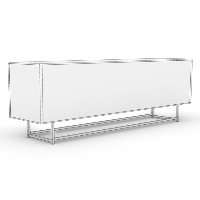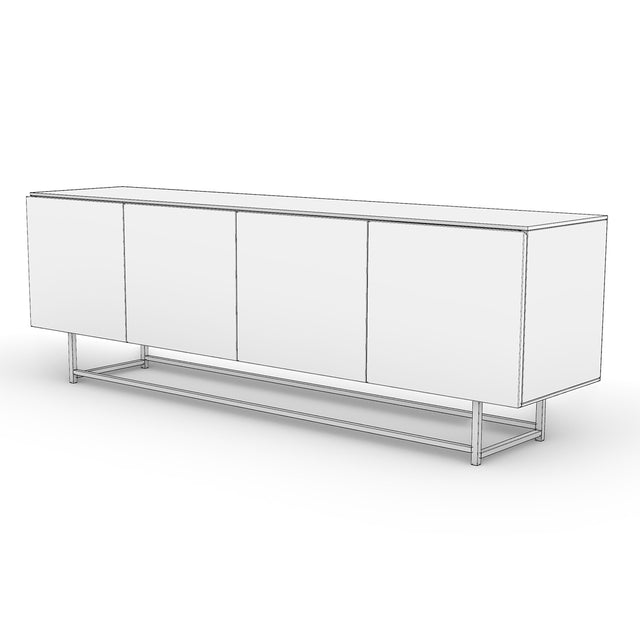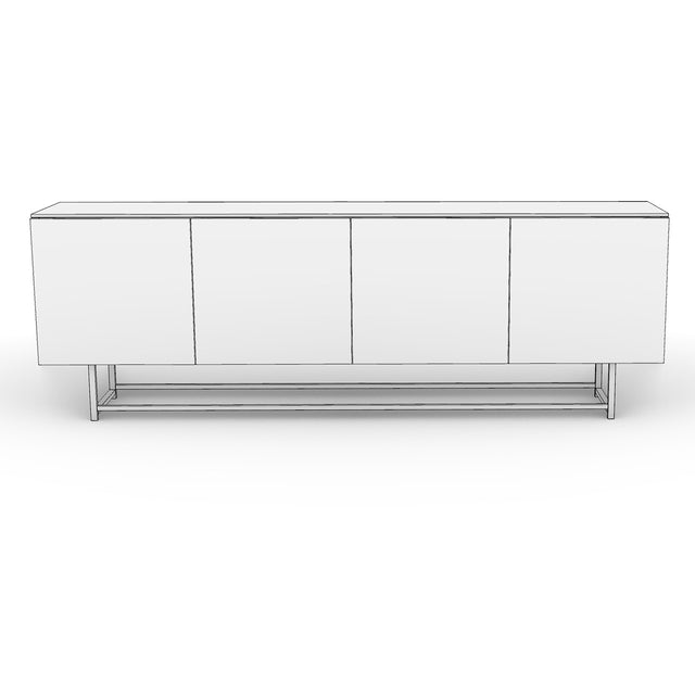 Immerse yourself in the art of simplicity with this sleek credenza. Its generous dimensions, measuring 109x25x36, exude practicality and style. The steel supports at the base offer stability, with four legs elegantly connected by parallel steel bars, forming a rectangular foundation.