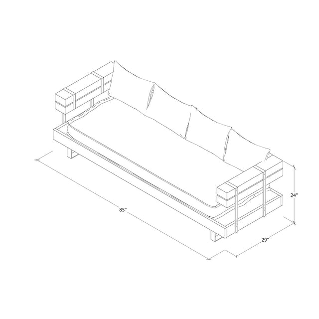 The El Capitan Meadow Brook Sofa, measuring 85x29x24 inches, is a beautiful fusion of straightforward design, master-crafted woodworking, and a modern sensibility. Available in Walnut, Pine, Black Oak, Douglas Fir, Redwood, and Cedar, this sofa stands out as a testament to both durability and aesthetic appeal.