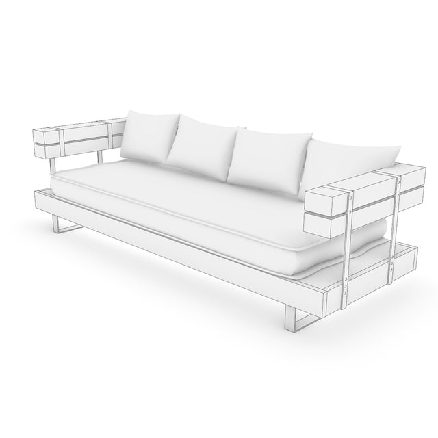 The El Capitan Meadow Brook Sofa, available in Walnut, Pine, Black Oak, Douglas Fir, Redwood, and Cedar, is a fusion of straightforward design, master-crafted woodworking, and modern sensibility. With a steel support structure, generously sized armrests, and a plush cushioned seat, this sofa offers an excellent mix of comfort and style. Four matching pillows for the back complete the ensemble, showcasing a harmonious blend of rustic form and modern sensibility.