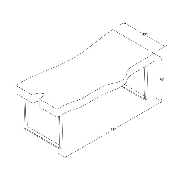 However, it's the tabletop that steals the show—a visual feast with a drop-dead gorgeous live edge featuring a pronounced curve. Each table is truly one of a kind, immediately capturing attention. The tabletop showcases spectacular natural grains, lines, and knots, creating an intricate landscape of nature's artistry. Adding to its natural charm, the table features a distinctive split at the end, further highlighting its unique character. The El Capitan Sentinel Desk is more than a desk; it's a masterpiece that effortlessly elevates any workspace.