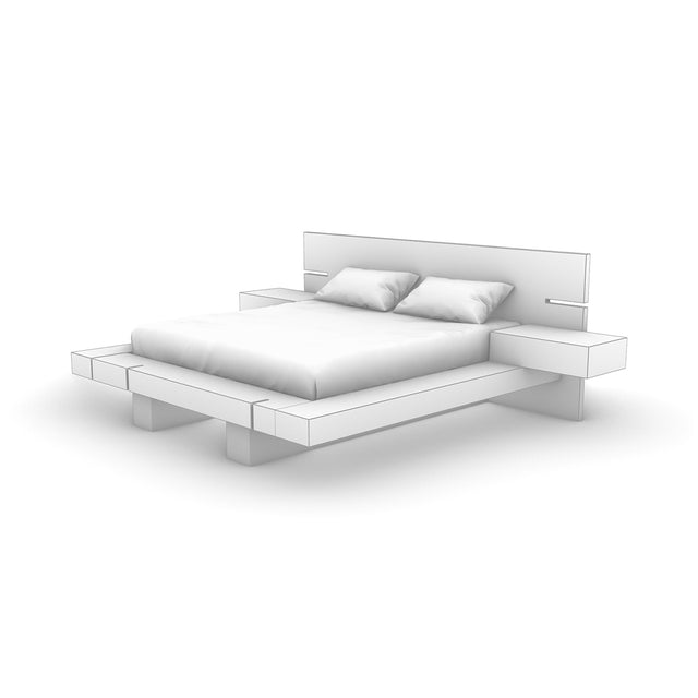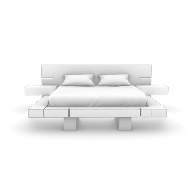 Masterpiece platform bedframe – elegance meets functionality. Fine wood options, symmetrical design, built-in shelves. Bring grandeur into your master suite.
