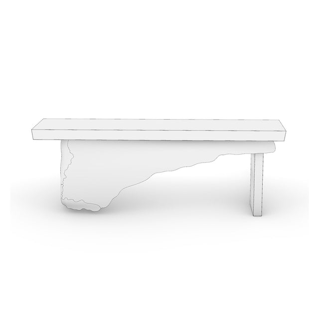 On one side, a smoothly finished leg, nearly the width of the table, exudes a refined elegance. In contrast, the other leg is a breathtaking display of the wild, featuring a massive live edge that extends from one end of the table, rising diagonally to the opposing upper corner. This untamed live edge, with all its natural splendor, evokes the essence of a forest, creating a captivating and harmonious balance between nature and artistry.