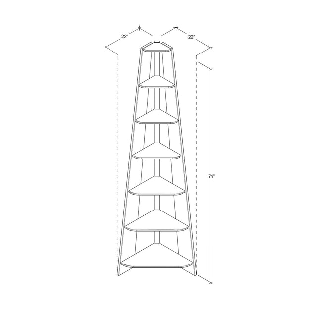 Immerse your space in the elegance of our pyramid bookcase, a tribute to architectural allure. Crafted from wood and finished in clear polyurethane, this masterpiece captures the essence of the iconic Transamerica Building in San Francisco. It’s form resonates with urban majesty, echoing the splendor of the cityscape. The five shelves, offer both practicality and artistry. Each shelf, inspired by the Transamerica Building's architectural grace, resembles a tier of brilliance. Designed to fit seamlessly into corners, this bookcase transforms any space with its erudite appeal.
