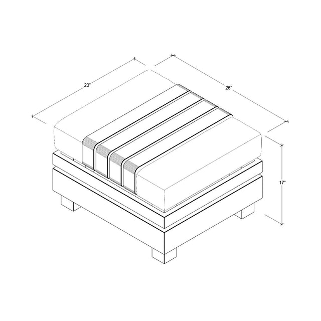 Kick your feet up with our remarkable outdoor ottoman, a perfect blend of modern simplicity and natural charm. With its cubic design and carefully selected materials, this ottoman adds a touch of sophistication to any outdoor space. The wooden top, adorned with smooth strips, highlights the beauty of the wood while providing a comfortable seating area. Accompanied by the plush cushions, this ottoman offers a cozy spot to relax and unwind. The 2.5"x2.5" wooden legs provide sturdy support and add an elegant touch to the overall design. Create a welcoming feeling in your outdoor space with this stunning ottoman, where simplicity and nature come together beautifully. Available in Cedar, Black Oak, Douglas Fir, Pine, Walnut and Redwood.
