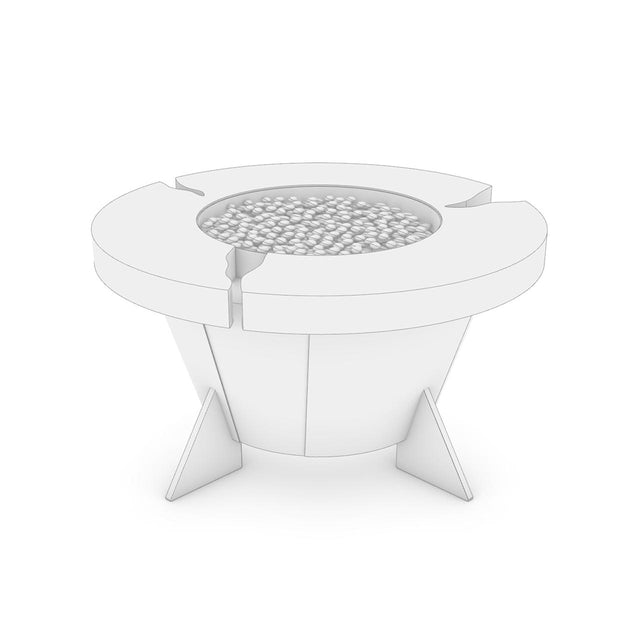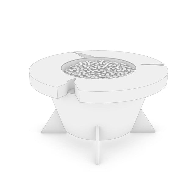 Add brilliance to your outdoor space with a stunning 42-inch diameter, 24-inch tall outdoor fire table. The base harmoniously combines metal and wood, revealing the wood's natural lines and patterns. An intriguing inverted-cone-shaped metal base adds a unique touch, reminiscent of a rocket or engine. The circular wood tabletop replicates the beauty of a tree trunk, featuring live edges and artistic cracks, creating a captivating centerpiece.
