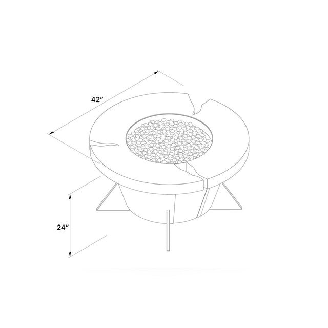 Rest and recharge in the glow of this enchanting outdoor fire table with dimensions of 42 inches in diameter and a height of 24 inches. This piece harmoniously combines metal and wood to create an elegant outdoor addition.