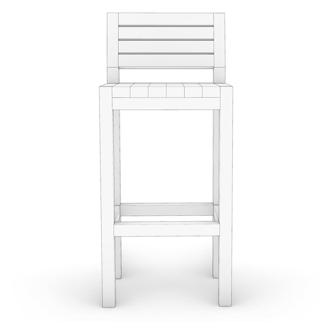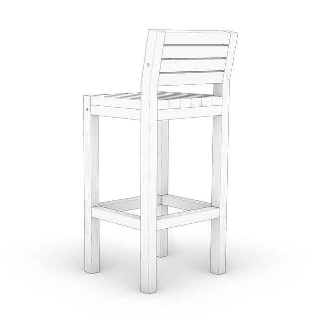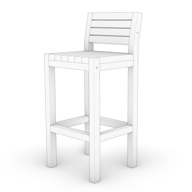 Elevate Your Outdoor Space. The Malibu Canyon Saratoga Stool is available in Black Oak, Walnut, Pine, Redwood, Douglas Fir, and Cedar. Sleek Design with Poolside Aesthetic. Robust Four-Leg Structure. Comfortable and Sturdy Seat. Distinctive Slatted Wood Backrest. Enhanced Relaxation with Angular Design.