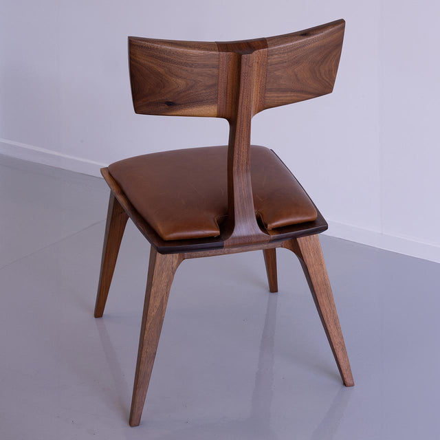 Embrace the elegance of the Butterfly Back Chair with an upholstered seat, a true masterpiece with dimensions of 18x20x33 inches. Shown here in Walnut with plush leather upholstery, this chair is also available in Oak or Douglas Fir, both finished with a lustrous oil finish. Similar to its wood seat counterpart, this chair exudes captivating beauty. What sets it apart is the generous leather cushion on the seat, providing an extra layer of comfort and sophistication. Just like its sibling, it seamlessly combines minimalist design with impeccable craftsmanship, making it a breathtaking addition to any space.