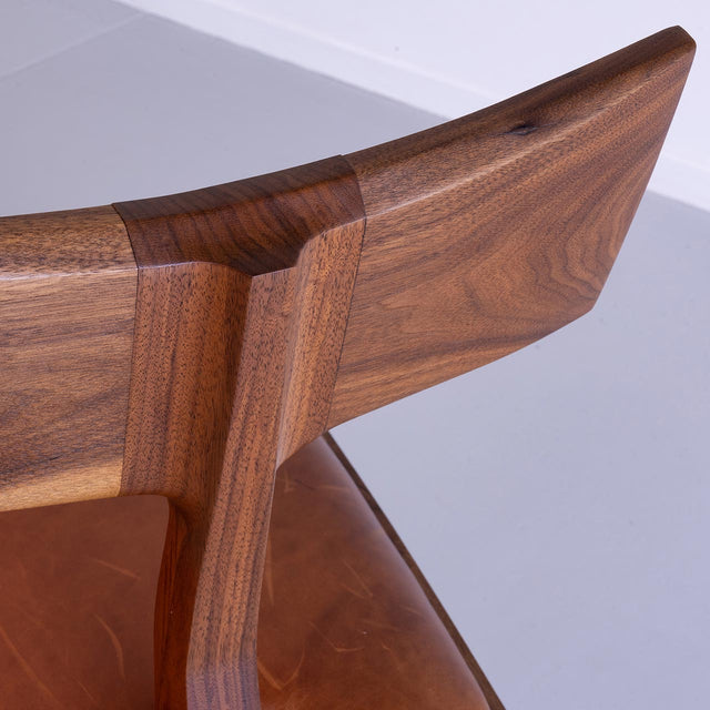 The Butterfly Back Chair with an upholstered seat is a masterpiece, available in Walnut with leather upholstery or Oak and Douglas Fir with an oiled finish. With dimensions of 18x20x33 inches, it offers a perfect blend of beauty and comfort. Much like its wood seat counterpart, this chair exudes captivating elegance, with the added feature of a generous leather cushion on the seat for increased comfort. It's a striking addition to any space, combining minimalist design with impeccable craftsmanship.