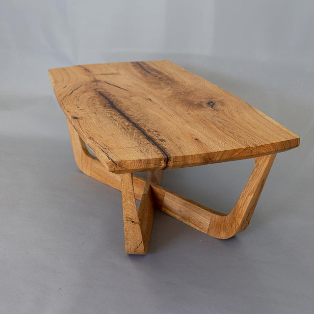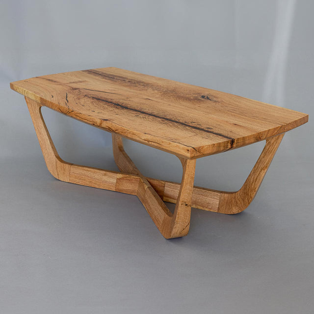 Empower your living space with the Python Cocktail Table, measuring a generous 48x24x16 inches. While shown in oak, it is also available in Douglas Fir, Walnut, Black Oak or Redwood, all featuring a lustrous oiled finish. This table exudes a quiet yet powerful presence, with its top surface embodying the untamed beauty of the forest. The contrast between the wild snakeskin figuring and the geometric base creates a harmonious and visually striking piece of art that complements any interior.