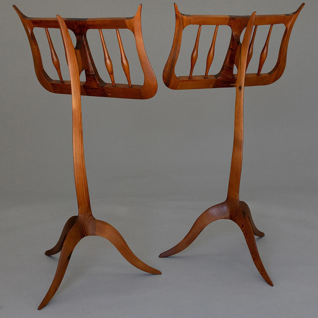 The Monte Nido Decorative Music Stands are a harmonious blend of art and function. Crafted from reclaimed Redwood, they are also available in Walnut, Oak, and Douglas Fir, each finished with a lustrous oil finish. With dimensions of 23x25x44 inches, these music stands showcase beautifully polished wood, displaying the natural lines of the material with seamless elegance. The base is a tripod, with each leg gracefully tapering down to its point of contact on the ground, resembling the roots of the tree from which the piece came. The wood then rises up in a gentle, almost imperceptible flow to the stand where the music is displayed. This design captures the essence of nature's music, making it a beautiful and evocative addition to any setting.