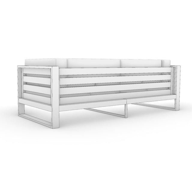 The Sausalito Bay Spencer Sofa, available in Walnut, Pine, Black Oak, Douglas Fir, Redwood, and Cedar, is a beautiful fusion of natural wood and dark steel, creating a modern masterpiece with a touch of rustic appeal. With generous steel armrests, slatted wood throughout, and high-quality craftsmanship, this ample sofa features a sleek and straightforward design. Two large cushions on the seat and four cushions on the back and sides ensure comfort, making it a standout piece that seamlessly blends modern sophistication with the timeless beauty of natural wood.