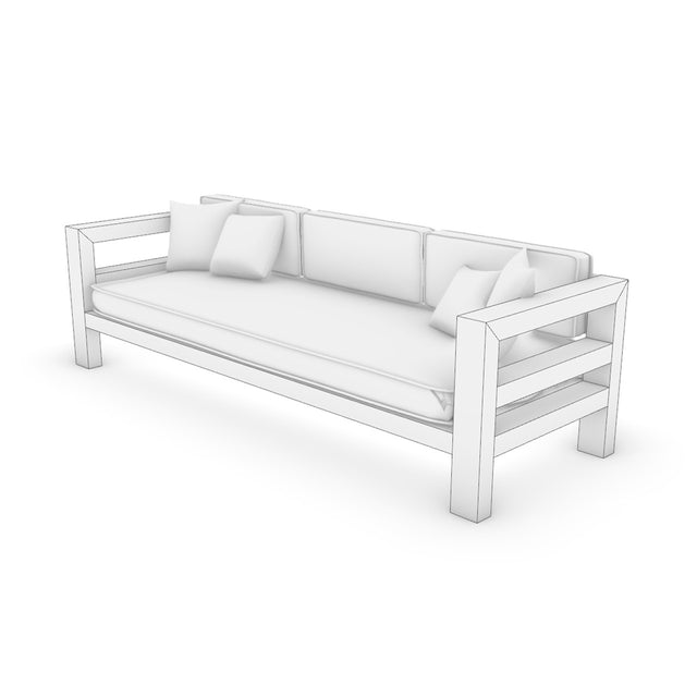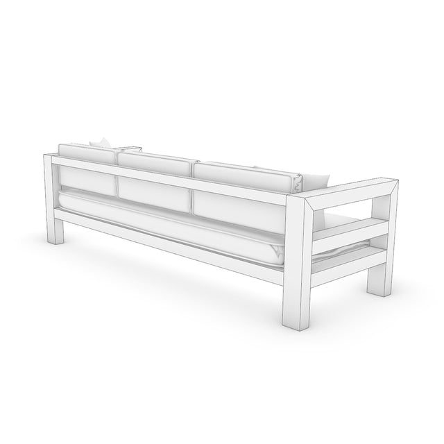 The design of this sofa is a study in simplicity. The front legs seamlessly extend into the armrests, creating a pleasingly geometric line. Meanwhile, the back legs pass through the armrests and into the back of the sofa, reinforcing its structural integrity.