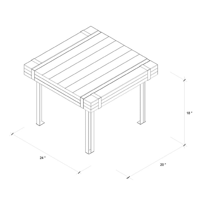 Enhance your space with our elegant side table, a testament to the artistry of wood and steel. Measuring 24x20x18, this versatile piece is available in a selection of fine woods, including Black Oak, Pine, Cedar, Douglas Fir, Redwood, and Walnut. Its design echoes the timeless beauty of the charming tables one would find at a vineyard or a wine cellar, each layer intricately grooved for added texture and character. The corners, fastened with steel, are a work of art in themselves.