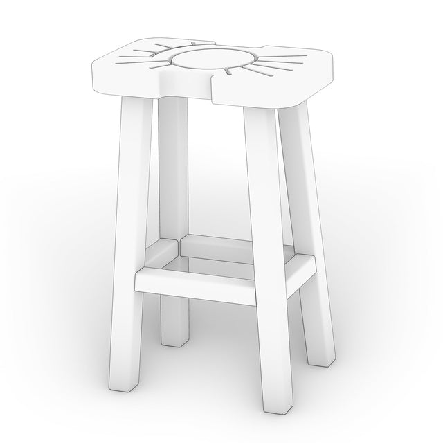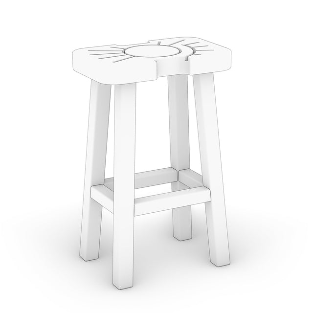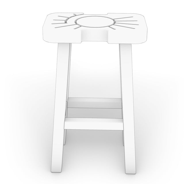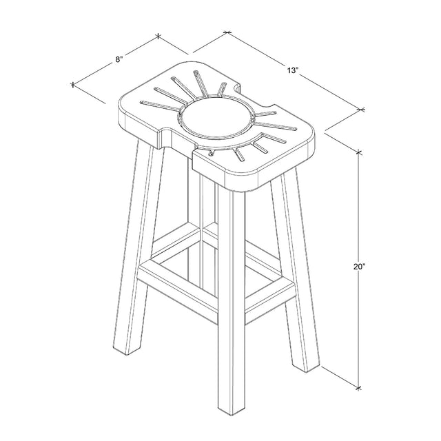Enjoy the artistry of nature with our handcrafted outdoor stool. Crafted solely from wood, its rustic warmth enchants your space. The natural finish evokes an authentic charm, as the forest intended. The seat, a nearly rectangular canvas, bears a gentle sun carving at its heart. Deliberate indentations on its sides invite easy mobility. The legs, each interconnected at the base, radiate stability, not unlike the source it came from. Enhance your outdoor haven with this functional masterpiece.