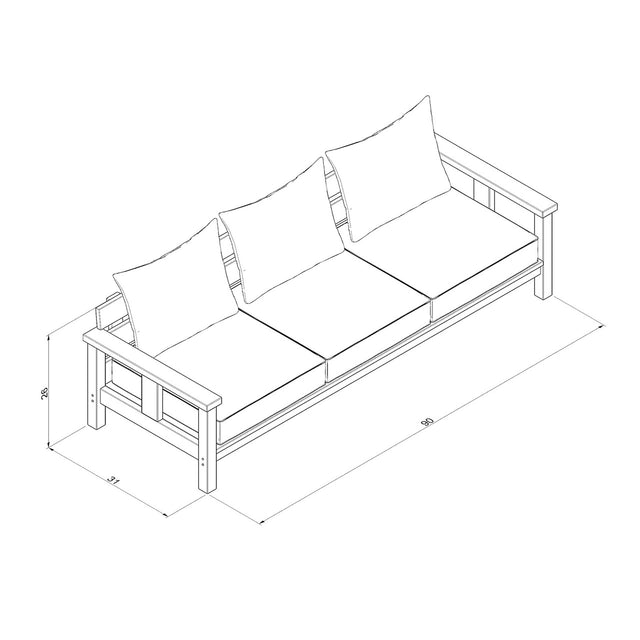 Wooden frame 3-seater sofa – enduring comfort and elegance. Meticulous craftsmanship, plush cushions. Transform your space with style.