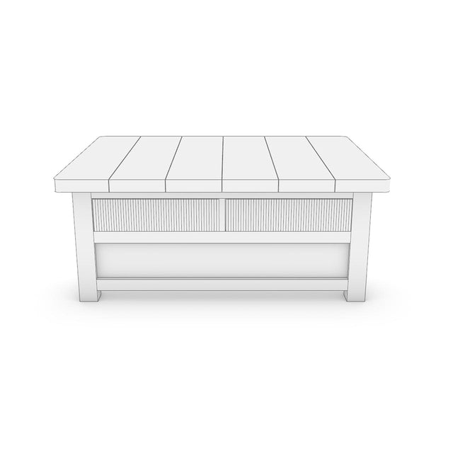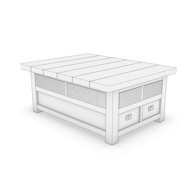 Venice Beach Cabrillor Table: Chic and Functional Design. Elevate Your Living Space. Crafted from Black Oak, Walnut, Pine, Redwood, Douglas Fir, or Cedar. Celebrating the Beauty of Natural Wood. Thoughtful Storage with Two Drawers. Captivating Visual Gap with Artful "Netting." A Statement Piece of Contemporary Elegance.