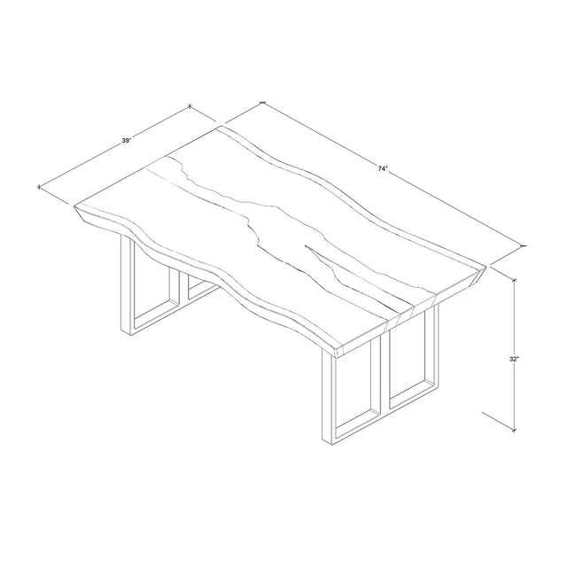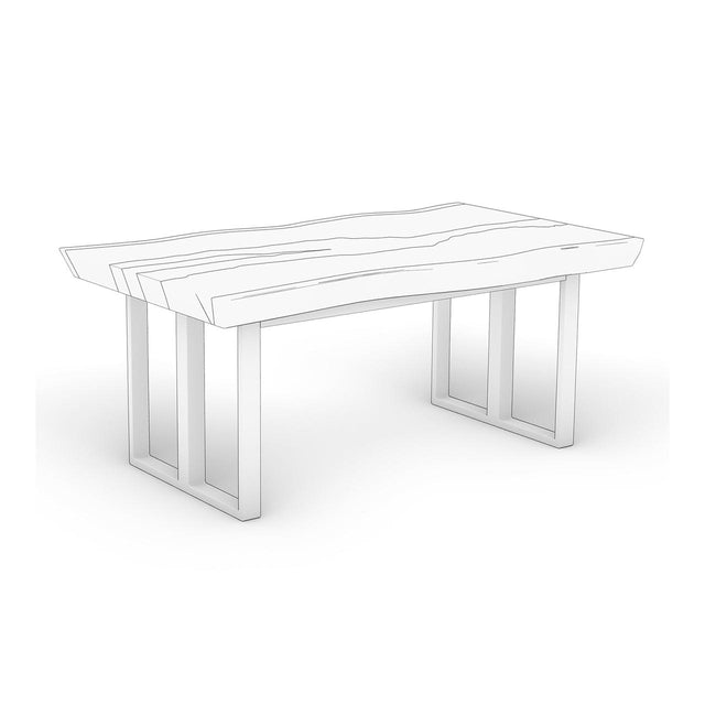 Venice Beach Frey Table – a captivating fusion of nature and design. Wavy live edges, polished wood with a unique darker mark, and sturdy steel supports. Elevate your space with Venice's allure.