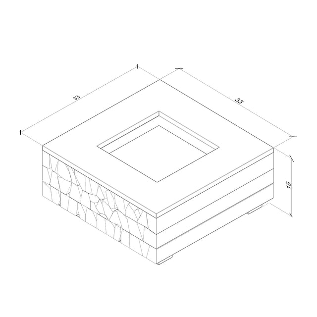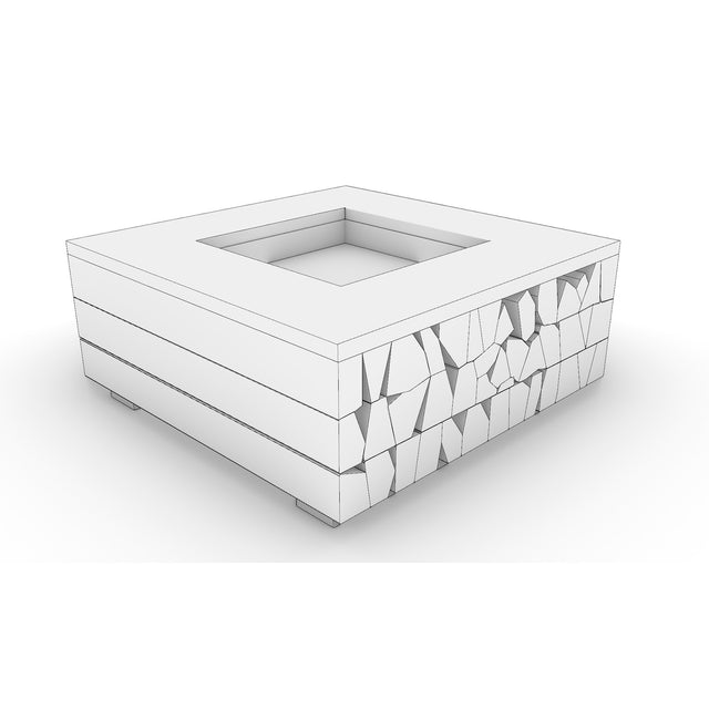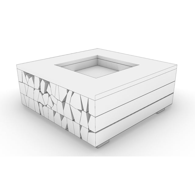 Unleash the allure of firelight with our captivating outdoor fire pit, a seamless blend of stone and wood. Crafted to warm your outdoor get togethers, this masterpiece embodies the art of elegance and warmth. The base, a meticulously arranged pile of wood, stands as a tribute to nature's aesthetics. Atop this organic foundation lies a perfectly square and polished stone top, embodying both precision and luxury. The recessed middle area cradles a fire pit hewn of (or set in) stone, creating the hearth of flickering flames. Gather around the crackling element and kindle connections under the open sky.