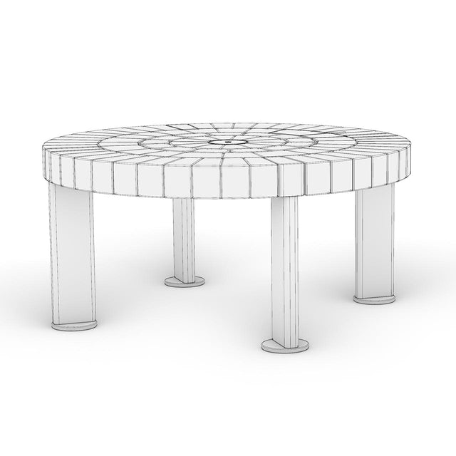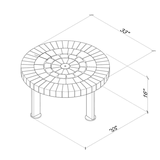Transform your outdoor space with this captivating round bench, featuring dimensions of approximately 33 inches in diameter and 16 inches in height. Crafted from a combination of wood and steel, it boasts not only robustness but also a stunning design that's sure to turn heads. The seating area is the true showstopper, with concentric rings formed by individual, symmetrical wooden pieces. Each ring presents a unique pattern or structure, creating the appearance of a mesmerizing wooden mosaic. With its sturdy steel legs positioned at 90-degree intervals, this bench blends artistic elegance with dependable stability.