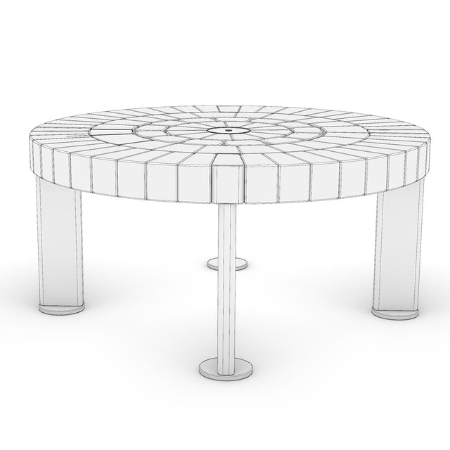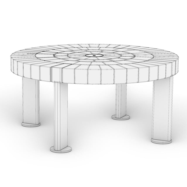 Enhance your outdoor space with our unique round bench, measuring approximately 33" in diameter and 16" in height. It features captivating concentric wooden rings and sturdy steel legs, offering both style and function.