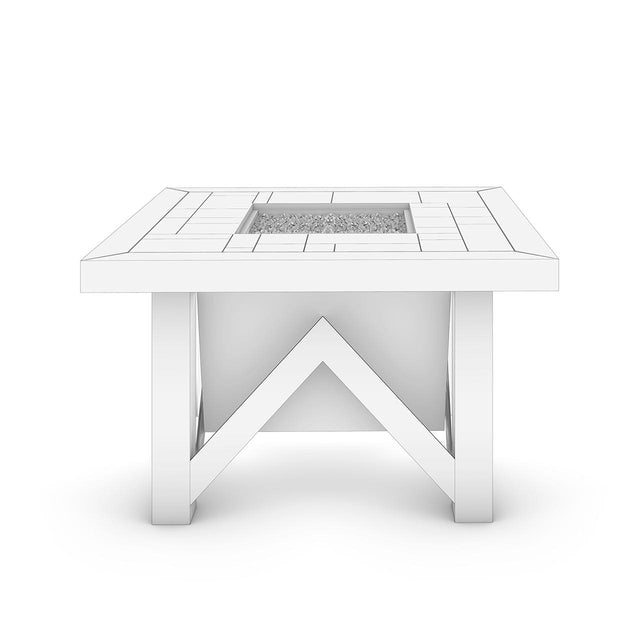 Discover the allure of this unique fire table. It's an interesting blend of robust steel support structures and a striking tabletop that's sure to capture your attention.